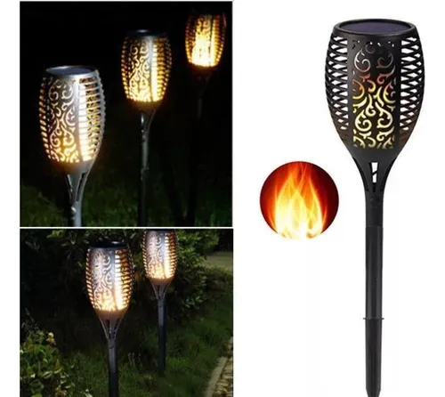 Luminaria Espeto Jardim LED Tocha Chama Solar Fogo IP67 Uso Externo