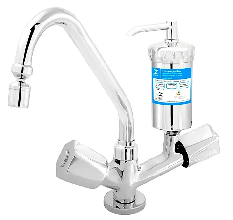 Torneira bica móvel 360° (giratória) de cozinha para instalação na mesa / bancada, C50, fabricada em metal cromado. Possui arejador articulado, podendo direcionar o jato da água para o local mais adequadado, além de poder girar bica, gerando mais flexibilidade de uso. O produto conta também com filtro completo, incluindo o elemento filtrante (vela) em carvão ativado aprovado pelo INMETRO, absorvendo o máximo de impurezas, podendo ser utilizada para o consumo humano. Além disso, conta com mecanismo de abertura e fechamento 1/4 de volta, gerando mais economia e conforto ao manusear, com maciês e rapidez, trazendo mais economia de tempo e água. Como principal acabamento de manuseio leva o lindo modelo tradicional C50, levando desempenho e ergonomia.
